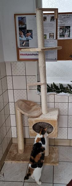 Unsere Bürokatze musste den mitgebrachten Kratzbaum auch gleich ausprobieren - und hat ihn für toll befunden.