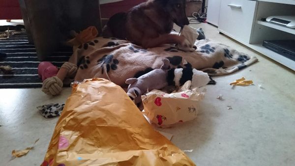 Auch Arthos durfte Weihnachtsgeschenke auspacken und hat ein paar neue Spielis bekommen:
