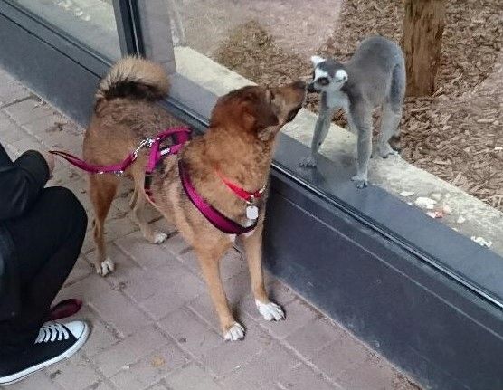 Auch an der allgemeinen Sozialisierung arbeiten wir mit ihm. Es gab bereits Erkundungstouren auf dem Abenteuerspielpatz (verschiedene Untergründe, Hindernisse überwieden, verschiedene hundgerechte Aktionen) und wir waren im Zoo.
