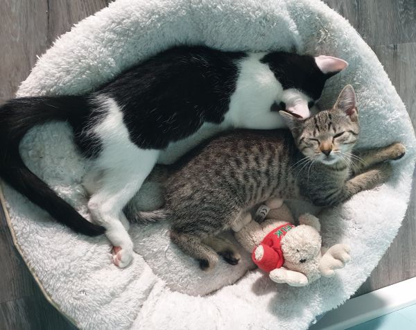 Amy hat sich super eingelebt. Sie und Nino haben sich total lieb gewonnen. Trotz des jungen Alters ist sie sehr kuschelig.