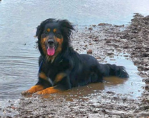 Alf ist ein gesunder Hund, hat eine Schulterhöhe von 54 cm und ein Border-Collie-Schäferhund-Mix.