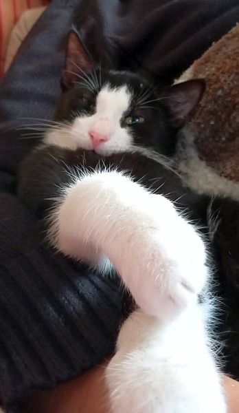 vor gut zwei Wochen haben wir die beiden schwarz-weißen Katzen bei euch abgeholt und die Beiden haben sich mittlerweile sehr gut hier eingelebt. Auch der kleine schüchterne Kater ist inzwischen zu einer richtigen Kuschelkatze geworden. Außerdem gewöhnen wir die beiden seit ein paar Tagen daran, dass sie in unserem Garten Freigang haben.